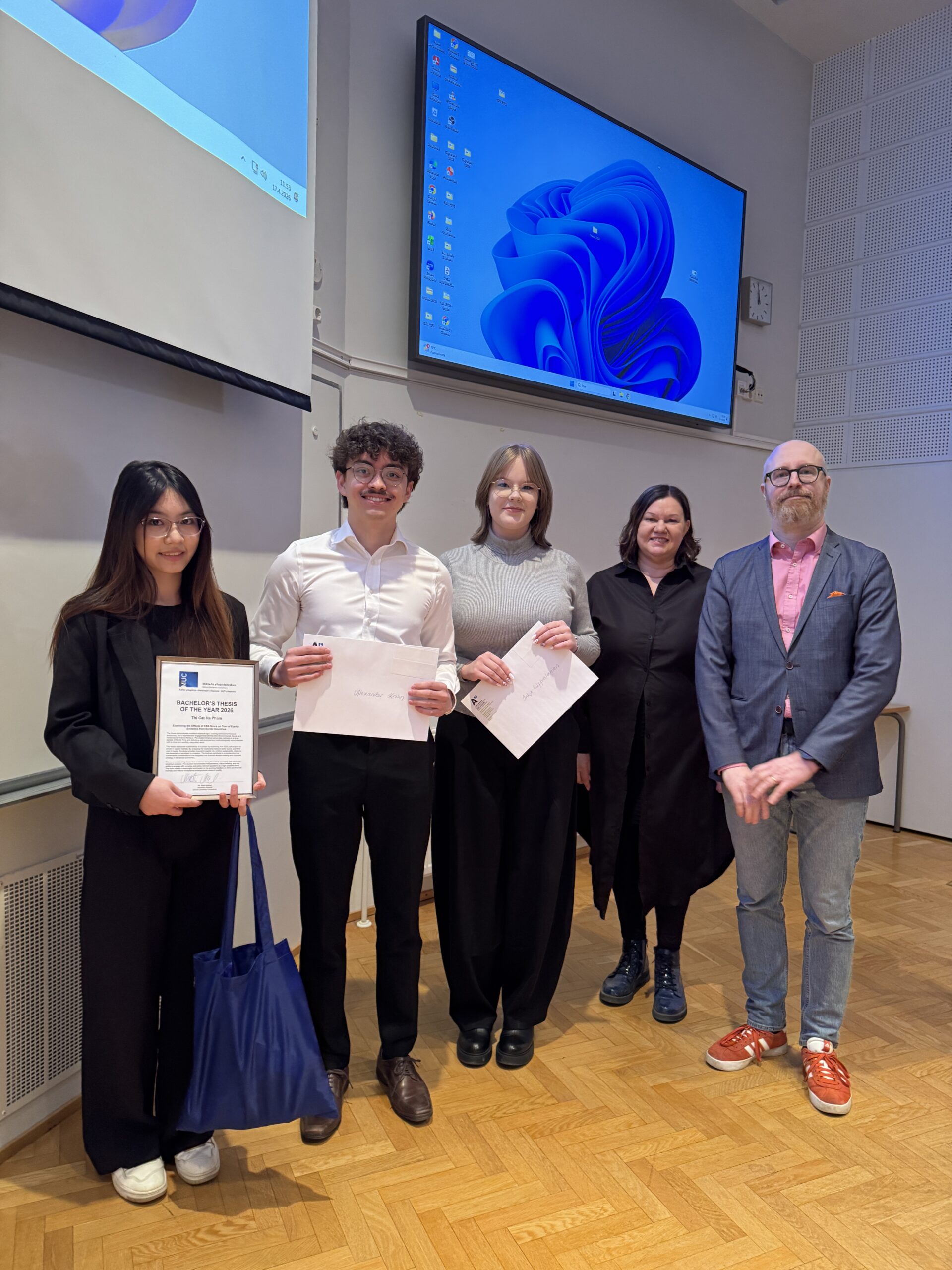 The MUC Thesis Award 2026 was announced by Matti Malinen, the secretary general of Mikkeli University Consortium. Bachelor’s thesis of the year 2026 was awarded to Thi Cat Ha Pham with the topic Examining the Effects of ESG Score on Cost of Equity: Evidence from Nordic Countries. The thesis demonstrates excellent empirical rigor, a strong command of financial economics, and a sophisticated engagement with the ESG (Environmental, Social, and Governance) finance literature.